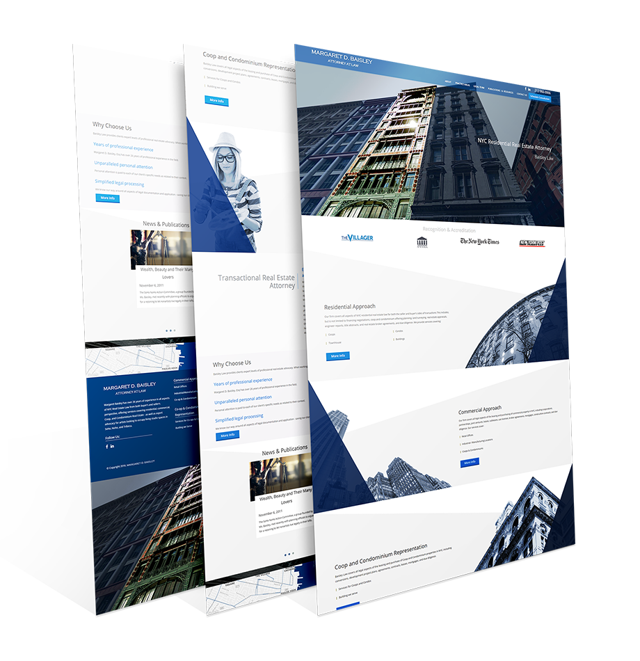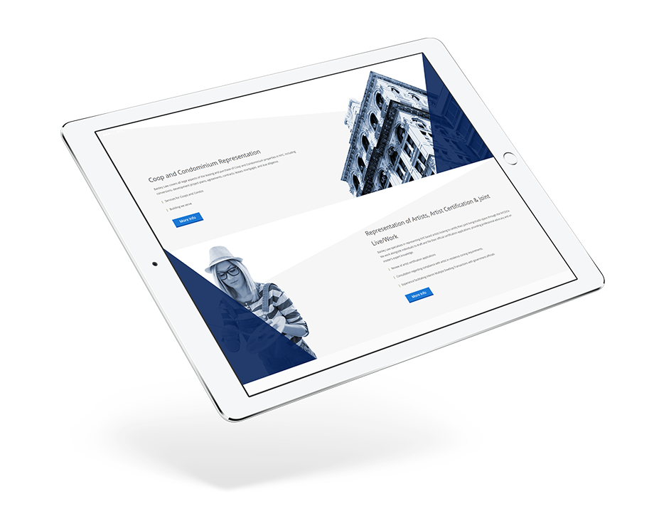 For this site, ORAIKO was asked to help create a clean, readable template that would help break down some of the more technically complex aspects of real estate litigation into a format that the average member of the public could easily understand. We highlighted original, plainspoken, yet informative content within a clean and simple - yet multifaceted layout context. We pushed forward the legal firm’s experience and expertise with a fully fleshed out Publications & Resources page that provided heavy detail as to the firm’s rich and vast legal representation and action experience.